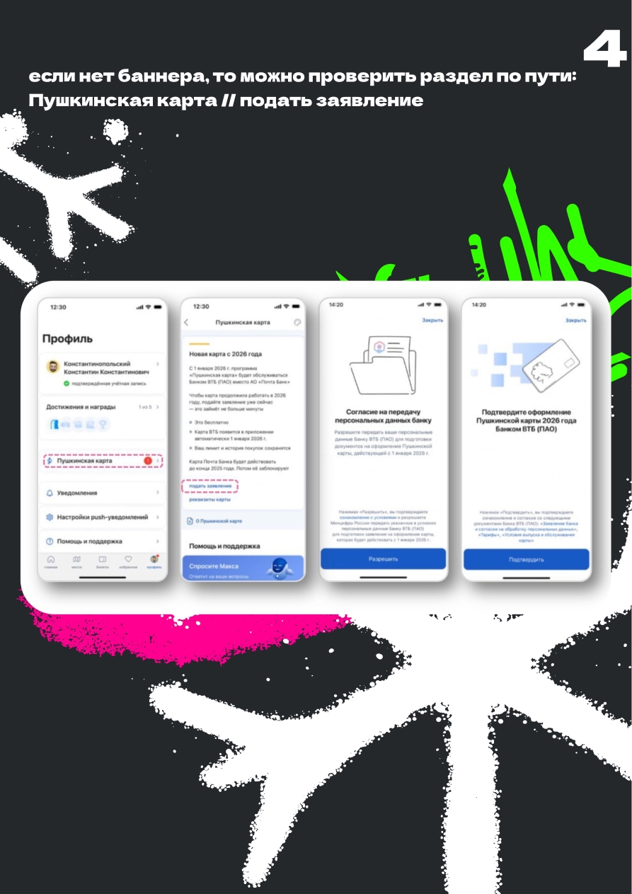 Чтобы обеспечить бесперебойный переход и сохранить доступ к программе, пользователи «Пушкинской карты» уже сейчас могут подать заявление на ее выпуск в ВТБ. Сделать это можно двумя способами: