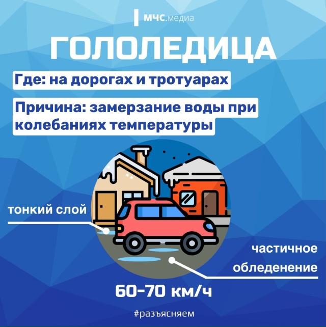 o гололедица — замерзание уже имеющейся на поверхности воды или уплотнение снега.