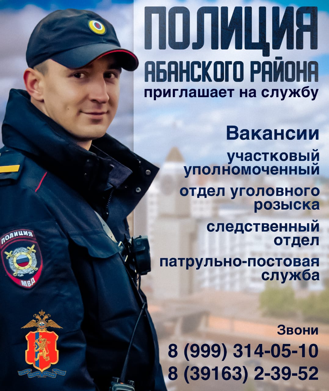 Энергичен, образован и силен? Полиция Абанского района приглашает на службу!
