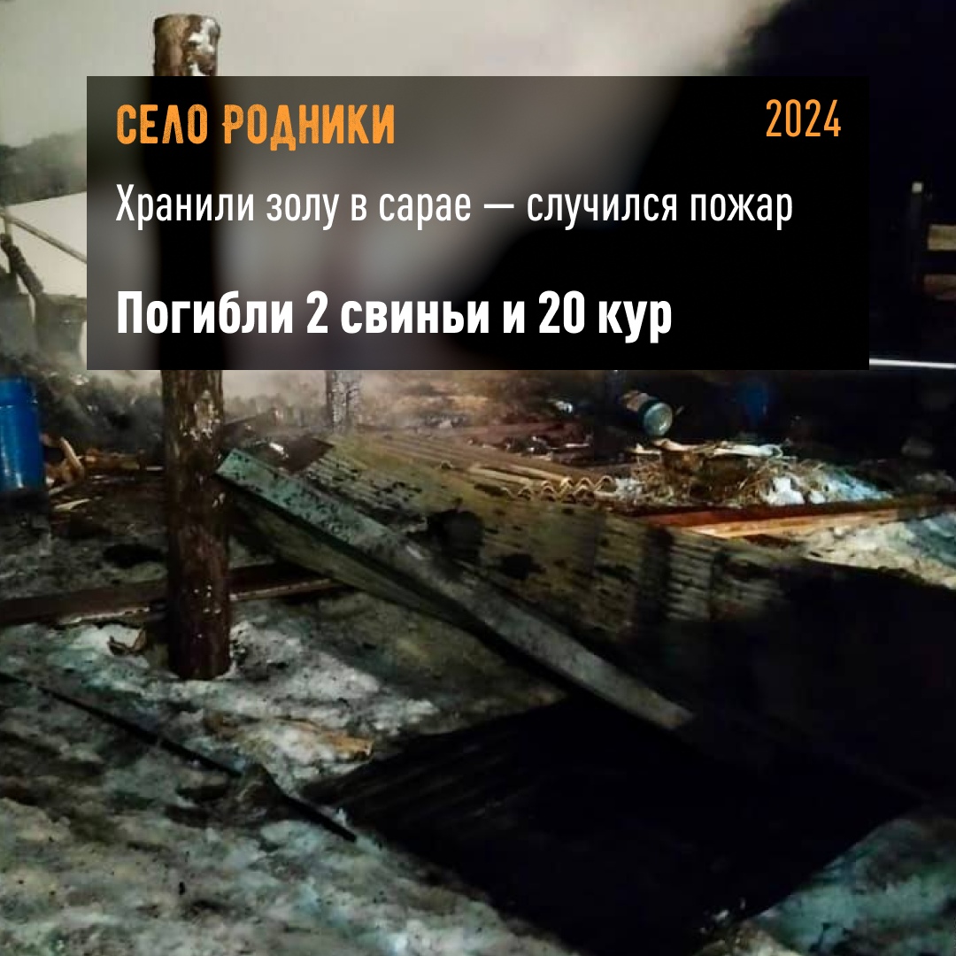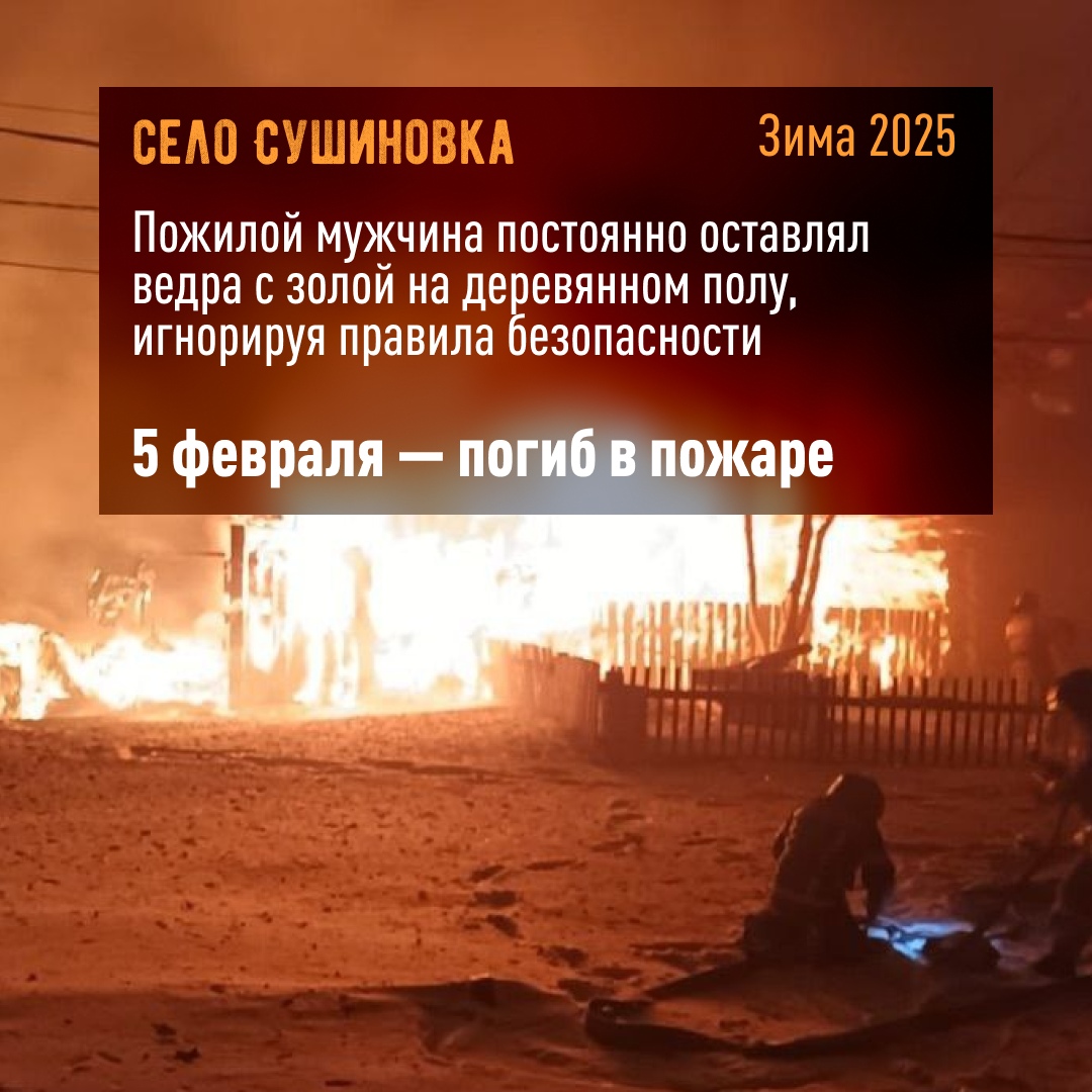 К сожалению, подобные случаи нередко заканчиваются трагедией. Зимой в селе Сушиновка из-за золы, оставленной на деревянной веранде, погиб мужчина, огонь уничтожил два дома. Также зафиксированы случаи пожаров в Рыбинском, Шарыповском и других округах края.