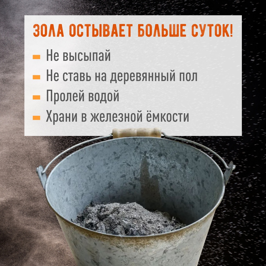 –храните золу только в металлической таре, не ставьте на деревянный пол.