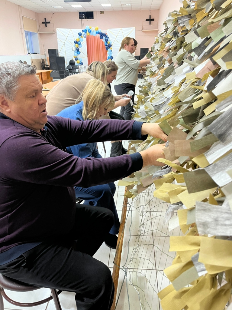 Приняли эстафету от волонтёров КСВО в плетении этой сети с верой, что вот так - лоскуток к лоскутку - мы всем районом приближаем нашу долгожданную Победу!