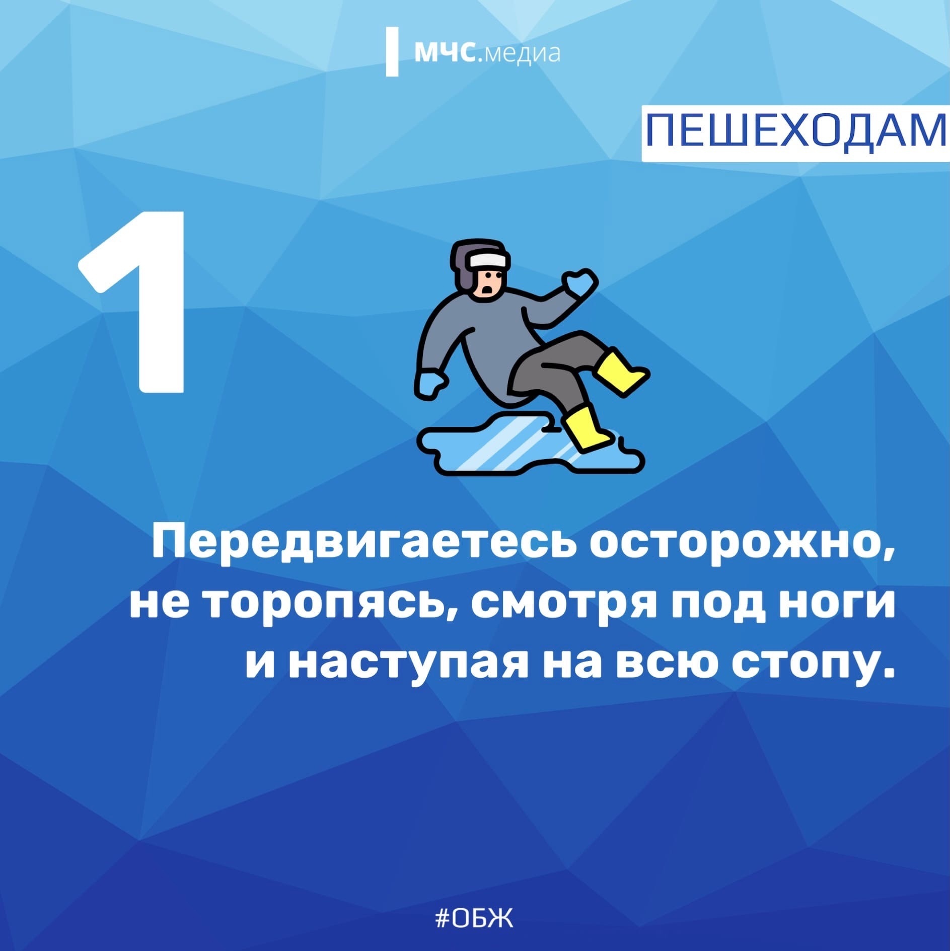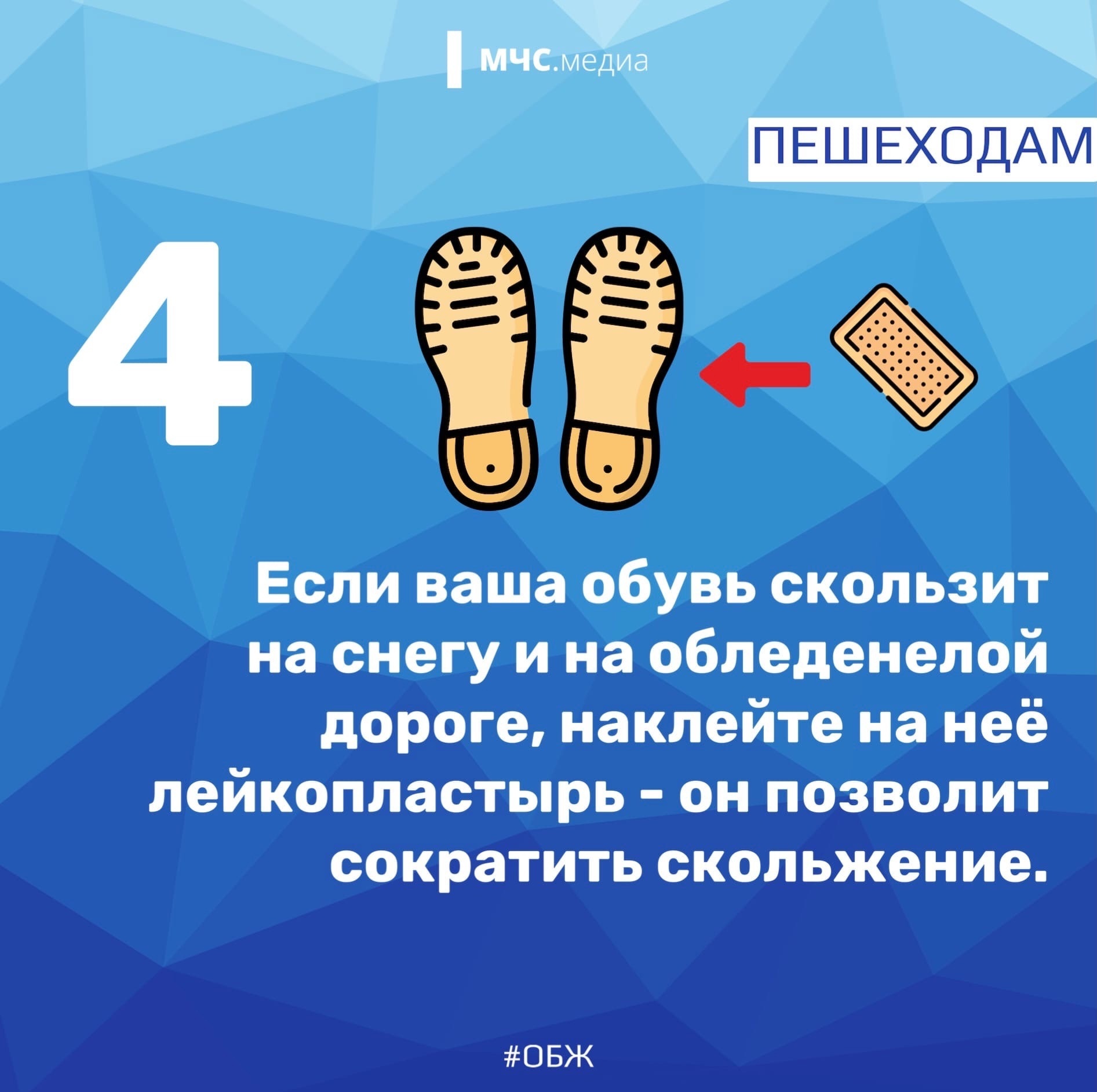 Передвигаться в гололед надо осторожно, ступая на всю подошву. Ноги при ходьбе должны быть слегка расслаблены, руки свободны. Если вы поскользнулись, сразу присядьте, чтобы снизить высоту падения. Сгруппируйтесь, чтобы исключить падение навзничь, в момент касания земли перекатитесь, чтобы смягчить силу удара.