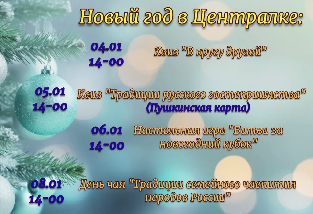 Дорогие друзья, мы рады пригласить вас провести зимние праздники вместе с нами в уютной атмосфере нашей Центральной библиотеки! В период новогодних каникул предлагаем вам окунуться в мир интеллектуальных развлечений.