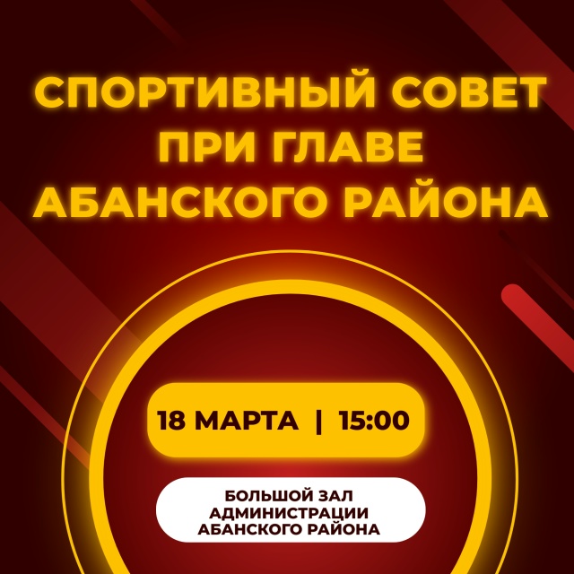 18 марта в 15:00 состоится Спортивный совет при Главе Абанского района