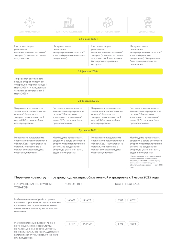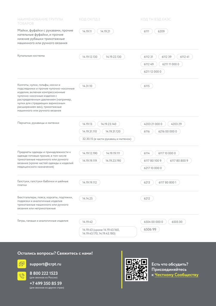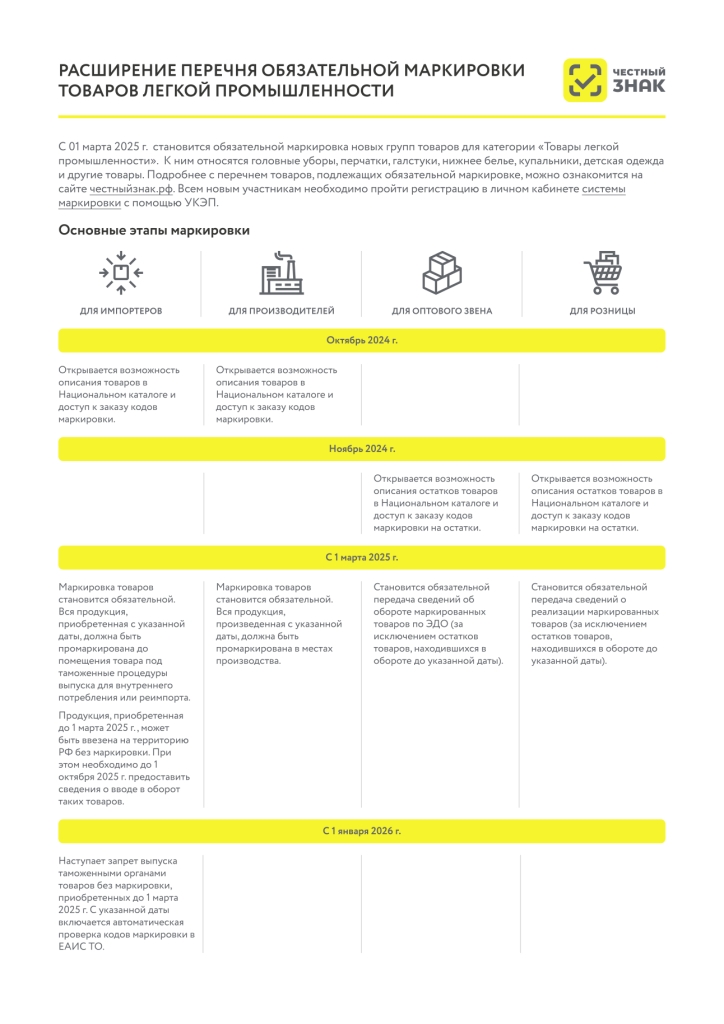 Справочный материал для хозяйствующих субъектов, реализующих товары легкой промышленности.