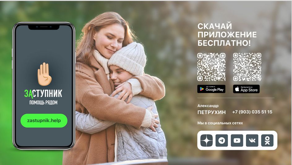 Уважаемые родители! Предлагаем Вам бесплатно установить мобильное приложение “Заступник”, которое, в отличие от многочисленных приложений родительского контроля, позволяет ребенку не только послать сигнал бедствия в экстренной ситуации, но и, что более важно, получить помощь экстренных служб и волонтеров в невероятно короткий срок - всего от трёх минут.