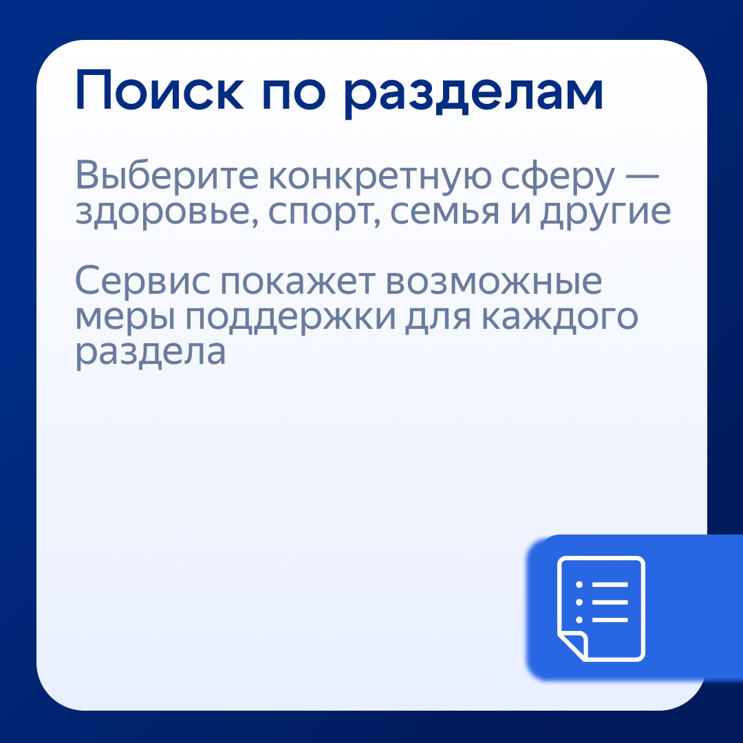 Чтобы не искать информацию вручную, используйте фильтры, сервис сам подберет для вас меры поддержки.